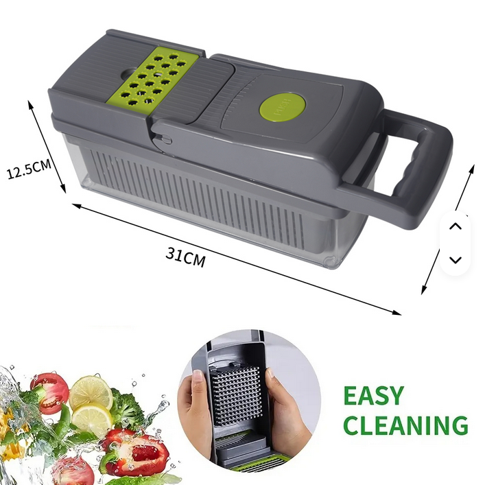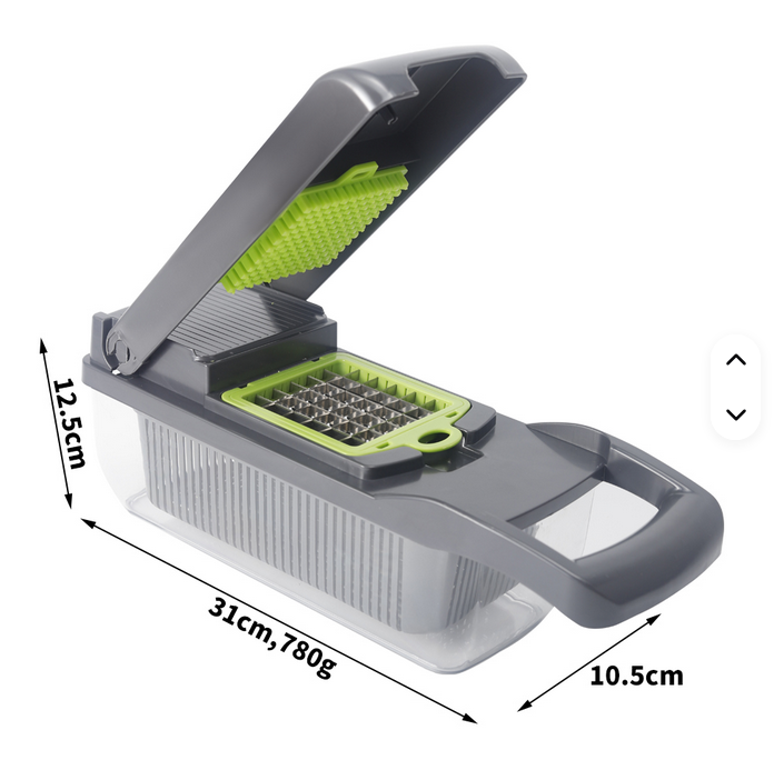 Ce coupe-légumes est un outil indispensable pour toute cuisine moderne. Grâce à son système de lames interchangeables et son bac collecteur intégré, il permet de découper rapidement fruits et légumes en dés, en bâtonnets ou en tranches uniformes. Fini les longues préparations : il vous fait gagner du temps tout en assurant une découpe régulière et soignée.